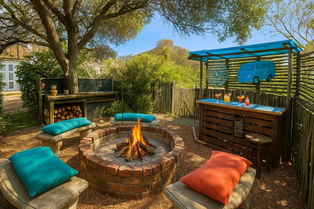 Outdoors, the magic continues The property is fully enclosed and features an incredible boma area with seating, a central basin, and its very own bar the perfect setting for long summer evenings, laughter-filled braais, and stargazing with loved ones.