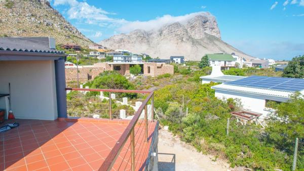 Sliding doors opening onto the covered terrace with a jacuzzi and built-in braai. Enjoy lovely views and the Pringle Bay sunset.