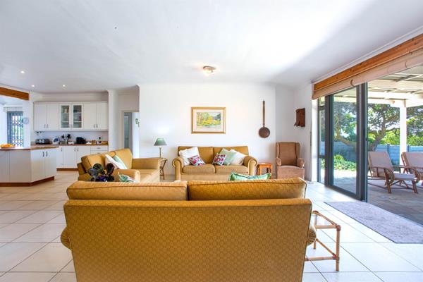 The layout is thoughtfully designed, with three bedrooms on each side of the home and a central open-plan living, dining, and kitchen/scullery area. The living space flows seamlessly onto the covered stoep with a built-in braai, overlooking the pool and garden a haven of privacy, views, and effortless entertaining.