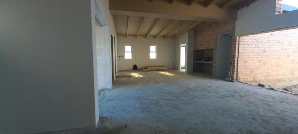 This newly built home is designed with families of four in mind: simple, practical, and ready for memory-making. Two single garages sit on either side of the property like quiet guards, framing the house and keeping the focus on the real heart of the homethe central open-plan living space. This is where everyone naturally gathers: the inside braai warm with conversation, the kitchen humming with activity, and the lounge opening up to a future decked area with a hot tub under the fynbos sky. Its an easy space. A grounded space. The kind that invites lingering.