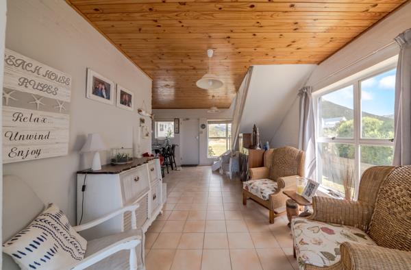 This double-storey property offers a flexible, guesthouse-style layout with four bedrooms two on each level and three bathrooms, two downstairs and one upstairs. Two of the bathrooms are full, featuring both a bath and a shower, all finished in earthy tones with a classic, timeless feel. The star of the show The two entertainment areas. Downstairs, enjoy direct access to a sparkling swimming pool, a wraparound garden, and a generous firepit zone with built-in benches and soft lighting perfect for festive summer evenings with family and friends. The built-in bar with built-in indoor braai adds that final touch, making this space the heart of your holiday gatherings, all geared up for a good kuier! Upstairs, the sunny verandah invites you to relax with mountain and sea views that stretch across the village ideal for a morning coffee or sunset cocktail while the coxy fireplace makes winter nights just as inviting. This house is ticking all the boxes!