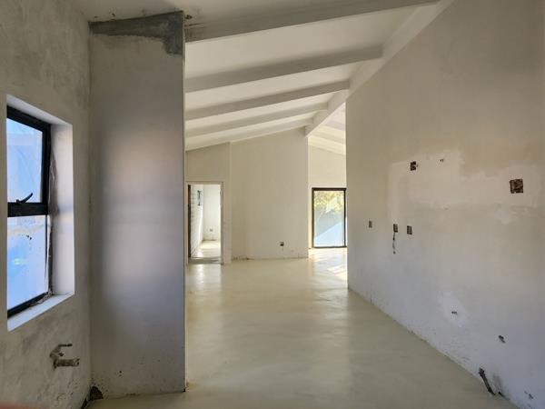 Step inside to discover plastered walls, beautiful colour screeded and sealed flooring, an open plan dining area and living room with built-in braai that serves as the heart of the home, is ideal for entertaining or enjoying quiet evenings . The built in braai, centrally located in the living room and framed with contemporary black klompie bricks is an attractive feature in the room. The private covered patio offers an extension of the entertainment area. The well-appointed kitchen located to the right of the dining area features all you need to whip up your favorite meals.