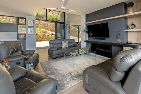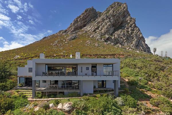 Exquisite new build with iconic sea and mountain views. Positioned at the foot of the dramatic Rooi Els mountains, this brand-new residence by architect Francois Swart and Hu Art Construction sets a new benchmark for contemporary coastal living. Designed with precision and artistry, the 352m home unfolds across two levels, where modern luxury and natural beauty seamlessly intertwine.