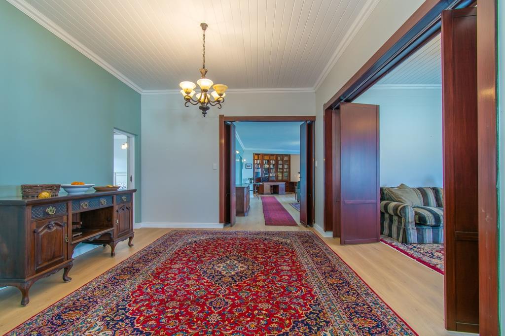 Elegant double front doors lead into a grand entrance hall, transitioning seamlessly to an impressive home office and the main lounge. Stylish wooden stacker doors offer the flexibility to separate the formal lounge from the well-appointed, cottage-style kitchen and dining area. The family room, also featuring stacker doors, provides a bright and airy space that connects the heart of the home to the beauty of the sea.