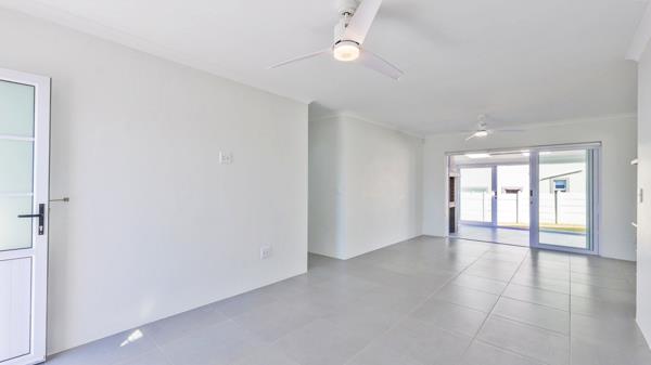 The primary living area consists of an open-plan kitchen, dining space, and lounge that integrates well for everyday activity and hosting. A separate entertainment room with built-in braai and wide sliding doors extends the living area and provides easy access to the enclosed garden.