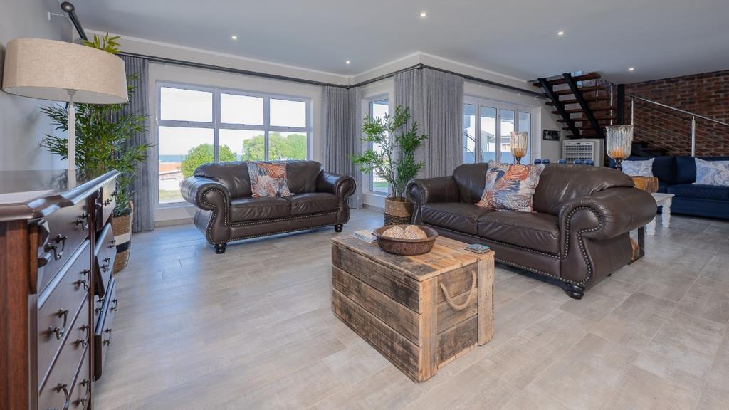 The living areas are generous and open, flowing naturally into a contemporary kitchen that forms the heart of the home. Multiple entertainment spaces set this property apart, including two indoor braai areas as well as a gas braai that opens onto the garden ideal for hosting gatherings in any season. The expansive boat garage offers ample room for boats, vehicles, or additional storage.