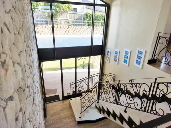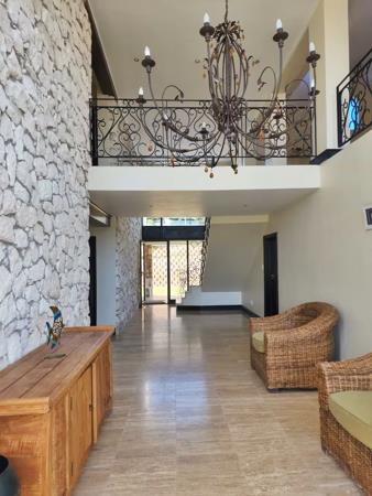 This property offers an enormous living area with designer wood and granite gourmet kitchen a must for the dedicated home cook. The indoor braai is conveniently added as part of the kitchenentertainment area. A deck leads from the kitchen to a braai room. Three of the four bedrooms are on the ground floor while the huge main bedroom cum bathroom is on the top floor. There is a lovely flow throughout the property which makes this pretty special.
