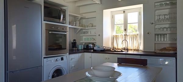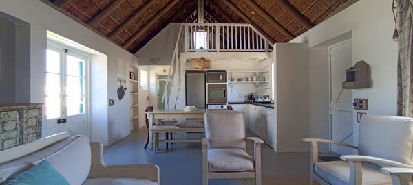 The house is designed with comfortable living spaces that open up to a courtyard garden. The open plan kitchen is well fitted together with a lounge. This area includes a loft, accommodating up to two additional sleepers. A spacious main bedroom has direct access to the courtyard. It includes an en-suite bathroom fitted with a bathtub, basin and toilet. The second bedroom has a separate bathroom with a shower, basin and toilet. The third bedroom has its own private entrance and includes an en-suite bathroom with a shower, toilet, and basin.