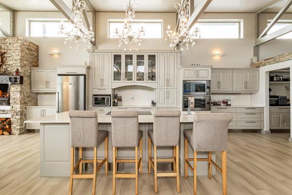 A gourmet kitchen with modern finishes and beachside charm