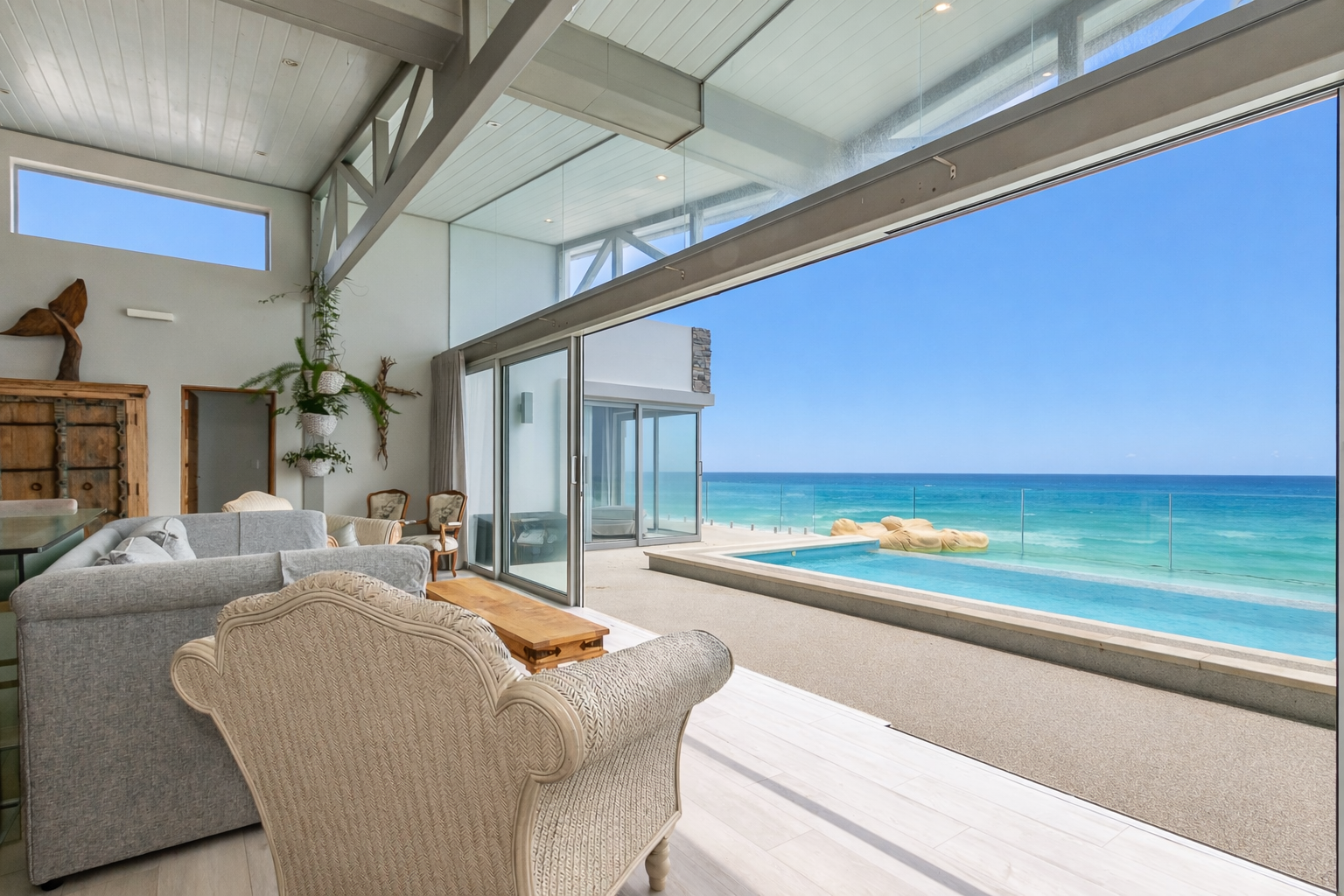 Wake up to the sound of waves and seabirds in this stunning beachfront residence perfectly positioned on pristine sandy shores. Light-filled and breezy, this home offers an effortless blend of relaxed coastal living and refined design.