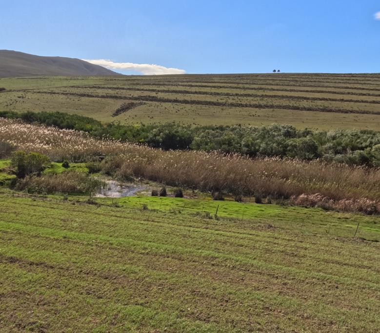 This portion was used by a tenant with a Dairy farm, completely cultivated arable dryland for wheat and pasture and/or grazing for cattle/sheep. There is possibilities to rent land on adjacent properties if bigger pasture is needed. The property is fenced on all sides however the Northern boundary is not on the cadastral line and need to be shifted to extend to the full approximately 23 Ha. About 95% of the area is useable for pasture with a thew rocks on one place.