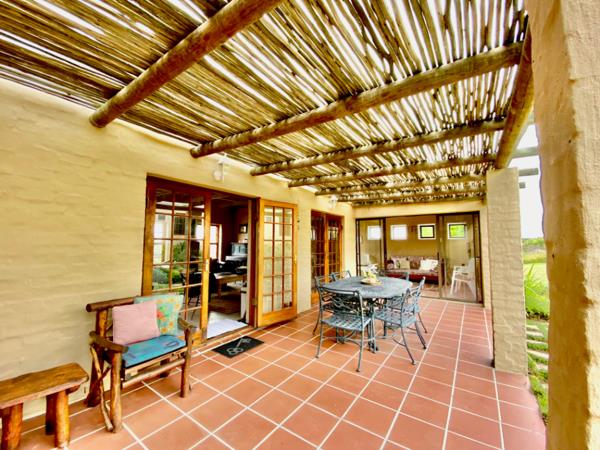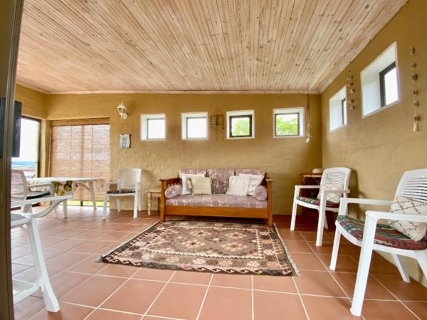 oCovered porch with a built-in braai for relaxed evenings.