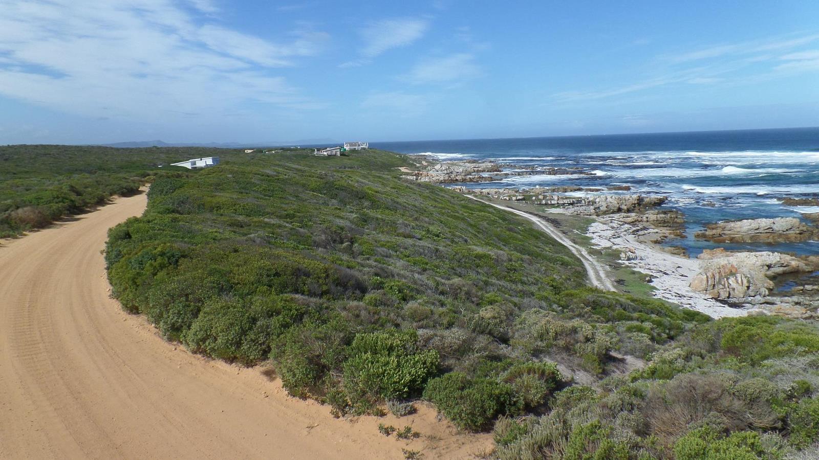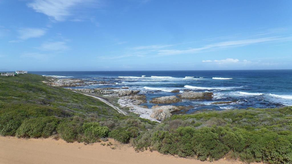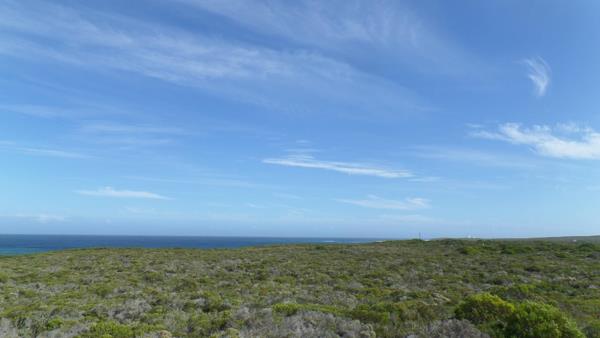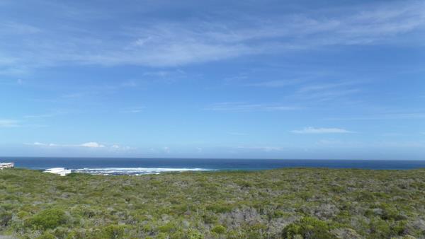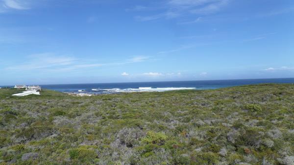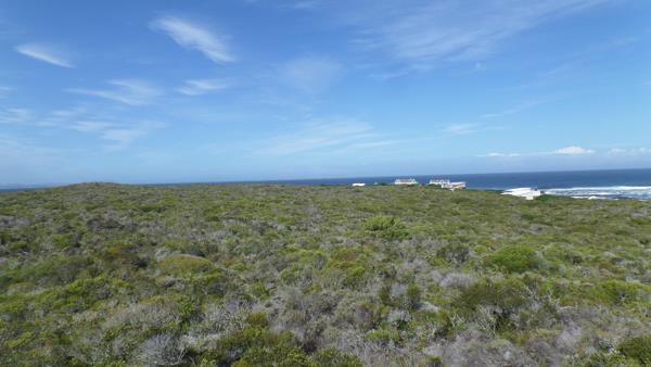 This smallholding is 4,6 Ha, with 94 meters seafront line. You have views all around to Dyer island, the lighthouse and Gansbaai mountain. The property has a slight slope from the sea towards the back and is covered with fynbos. Panoramic ocean view from this seafront property.