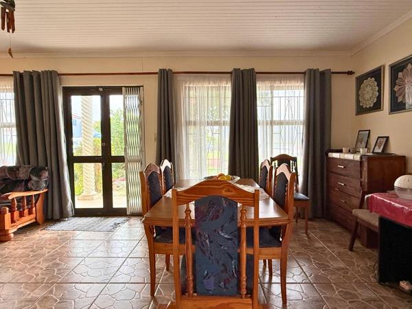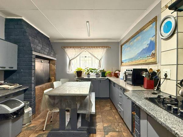 The main house boasts a welcoming downstairs layout, including a comfortable lounge, dining room, and a well-sized kitchen. A large braai room with its own washing-up and cooking facilities makes entertaining a pleasure, while additional spaces such as a study, hobby room with shower, laundry, and storeroom provide flexibility for a variety of uses.
