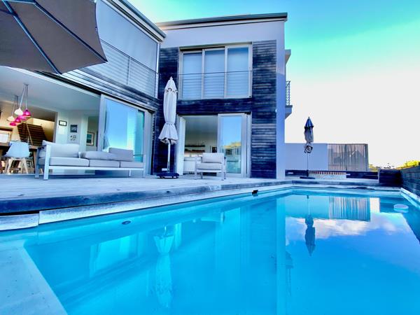 The heart of the home boasts an open - plan lounge and dining room, inside braai area, large sliding doors the front of the home opens onto a beautiful outdoor entertaining area with a pool surrounded by a garapa wood deck, a fire pit, outdoor hot shower completes the outdoor charm.