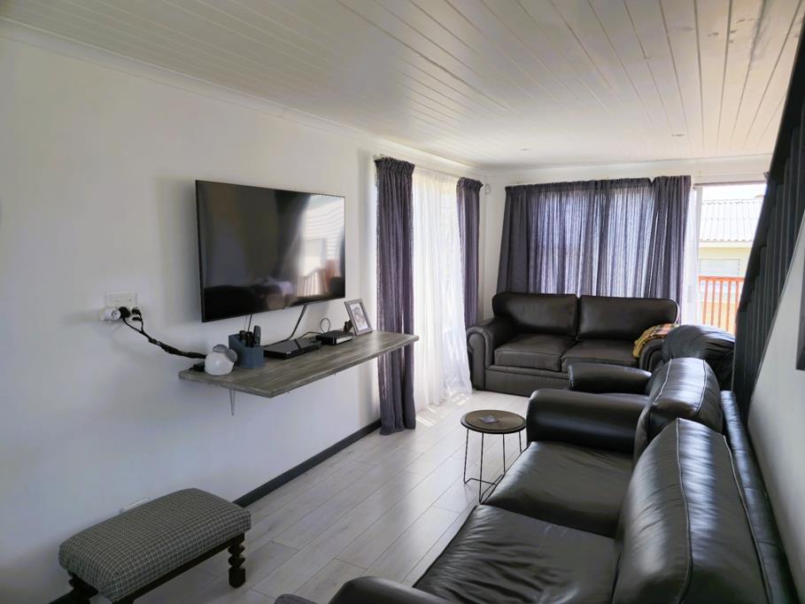 Adjacent to the main house is a self-sufficient three-bedroom flat accessible from both the main residence and garage on Tuin Street. Currently utilized as income-generating, self-catering accommodation, this unit can also serve as living quarters for additional family members. The lower level features a spacious bedroom with a bathroom which can easily be converted into a bachelor flat, or it can also be seamlessly integrated into the main house as an extension of the living space. The upper level boasts two bedrooms, a bathroom, and a kitchen/living area, all with breathtaking views. The possibilities are limitless.