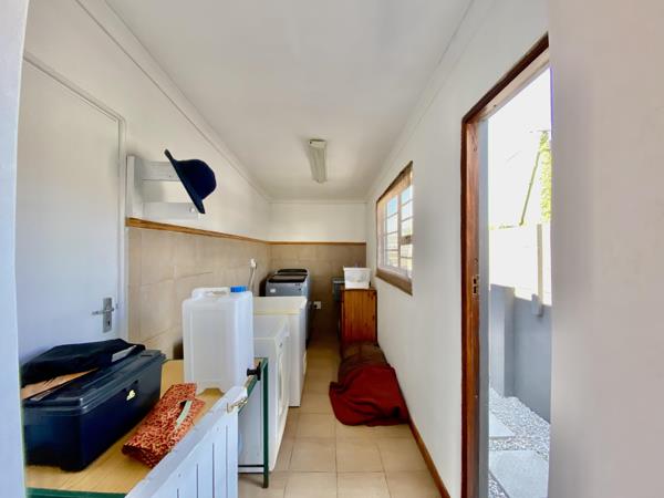 The main house, equally impressive, offers 2 comfortable bedrooms and 2 bathrooms, with a cosy kitchen and a small living area. A dedicated braai room leads to a separate laundry/scullery area, providing added convenience.