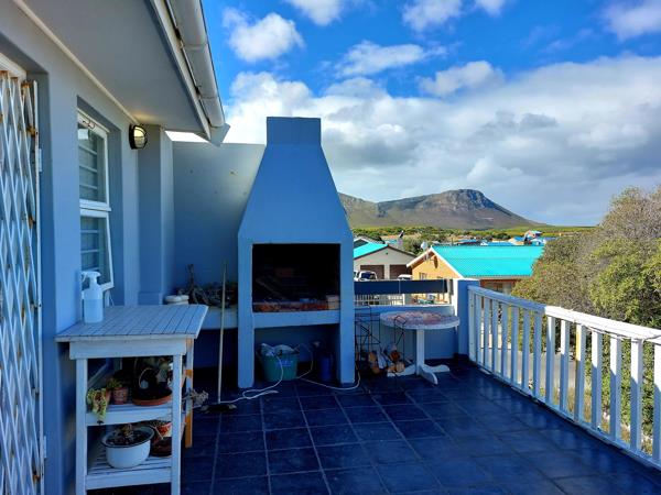 The home features 3 comfortable bedrooms, including a spacious main en suite, while the remaining two bedrooms share a bathroom. All bedrooms are fitted with built-in cupboards. The inviting living area includes a spacious lounge and dining area, with doors opening onto a balcony complete with a built-in braai the perfect spot to enjoy views of the ocean and mountains.