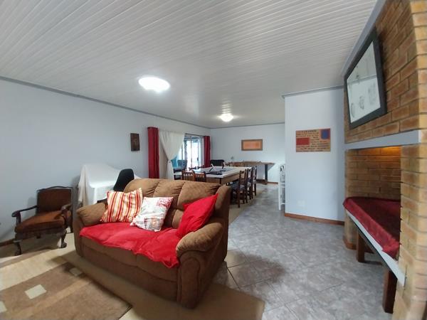 This neat and tidy house is ready for its new owners to enjoy. The spacious open-plan living area includes a large built-in braai and connects to the dining room. The dining room leads into the kitchen - an open space with lots off built in cupboards, counterspace and a built in electric oven with gas hob. There is also a large scullerypantry which leads into the first garage, and also enters out into the back yard.