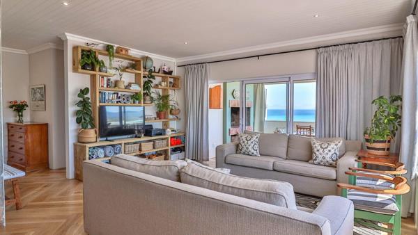 Upstairs, the first-floor highlight is the uninterrupted 180-degree ocean view from the entertaining area with built-in braai, kitchen, and open-plan living room. The kitchen, centred around an island, features a gorgeous pantry, adjoining scullery, and includes a fireplace with a Dover stove, ensuring toasty winter nights. Two bedrooms share the first floor, of which the master suite is extra special, boasting a sea view, balcony, walk-in closet, and en-suite bathroom.