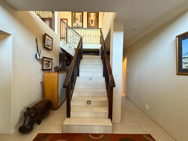 Upstairs, youll find a tranquil formal lounge with a cozy built-in fireplace and a private balcony an ideal retreat for peaceful moments. A second, expansive entertainment room is designed for both comfort and style, featuring a built-in braai, a convenient kitchenette, and stacker doors that open to a balcony offering distant sea views. Several other balconies, including four leading off the bedrooms, allow you to fully embrace the peaceful surroundings and enjoy the calming sea-facing vistas. There is also a large hobby room, complete with its own private balcony upstairs, perfect for creative projects or relaxation.