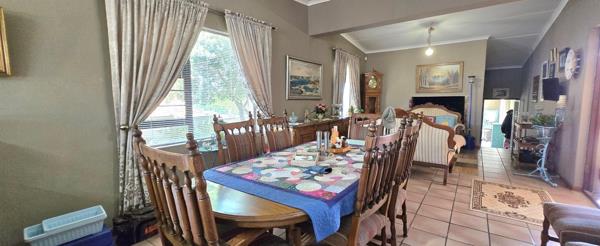 The entrance hall and front TV room welcome you with tiled floors and large windows that fill the space with natural light. The open-plan living and dining areas feature tiled flooring, curtain rails, blinds, and a cozy fireplace, creating the perfect setting for family gatherings or entertaining guests.