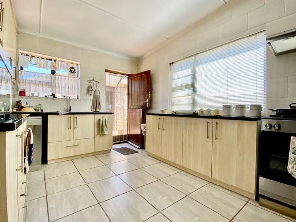 As you enter, youre welcomed by a spacious open-plan living area that flows effortlessly from the lounge and dining room into a tastefully renovated kitchen. The kitchen is a cooks delight, featuring ample cupboard space, a double sink and a dishwasher connection ideal for those who love to entertain.