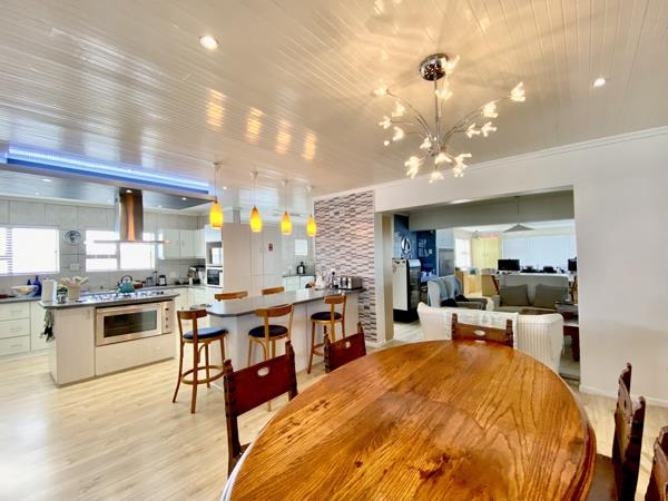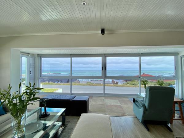 DUAL MANDATE Escape to the Tranquility of Franskraal. Situated on an elevated stand, the 443m2 stylish home offers an air of sophistication complimented by the stunning forever ocean view with Dyer Island in the deep sea, famous for Great White Shark cage diving. Enjoy the scene of the breaking waves and the fresh, clean - crisp ocean mist bringing a kind of inner peace. The spacious home offers a very large open area comprising of 2 lounges with fireplaces, dining area and study. A stunning modern kitchen with a cooking area as an island with a 5 burner gas stove and extractor fan, spacious scullery. 4 Bedrooms all with built-in cupboards, the main bedroom being en suite plus 2 bathrooms.