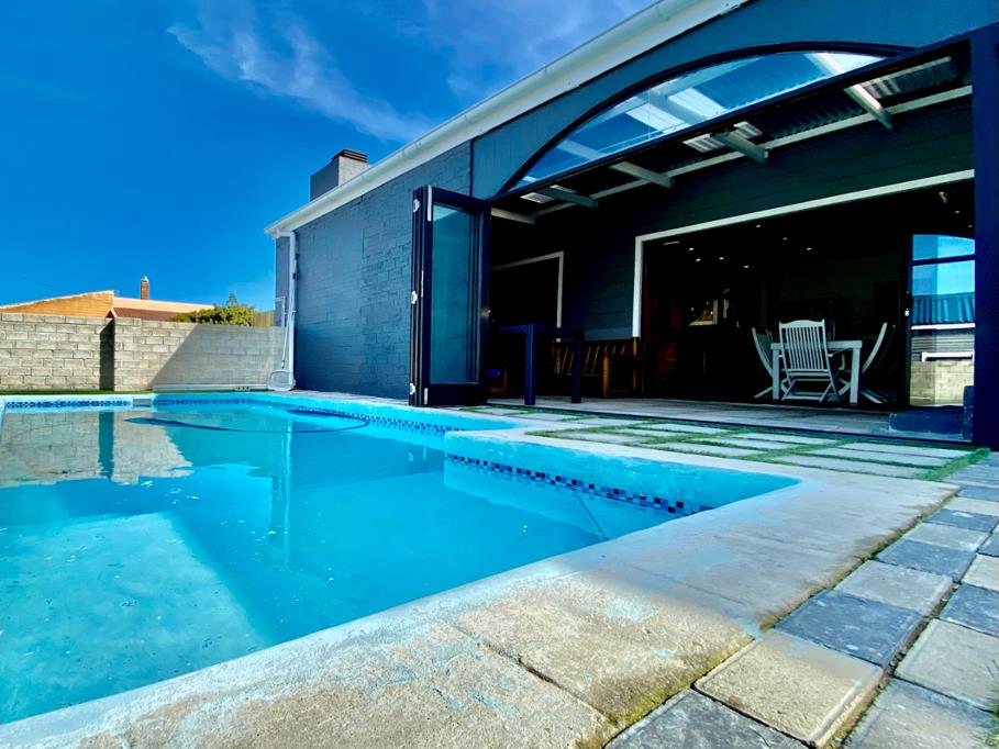 Looking for the perfect lock-up-and-go in Franskraal? This trendy, 2-bedroom home offers modern living just a 10-minute stroll from the beach. Enjoy mountain views from your bedrooms on this level corner stand with dual access gates. Imagine lazy afternoons by the sunny pool, a true rarity here! And for the adventurers? The extra-high double garage easily fits your caravan or oversized 4x4.