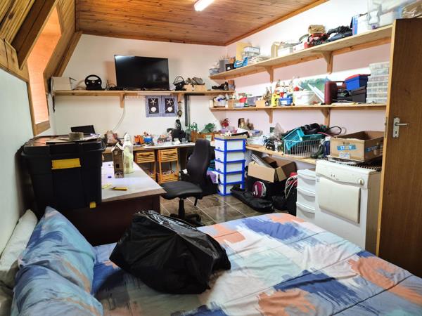 From the living area, the home branches off into a cozy bedroom on one side and a well-appointed kitchen on the other. Moving through the kitchen, youll discover a dedicated entertainment area complete with a built-in braai, ideal for gatherings. A patio door opens out to the expansive backyard, offering plenty of space for outdoor activities, gardening, or future landscaping ideas.
