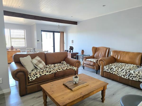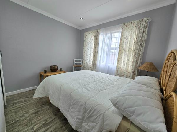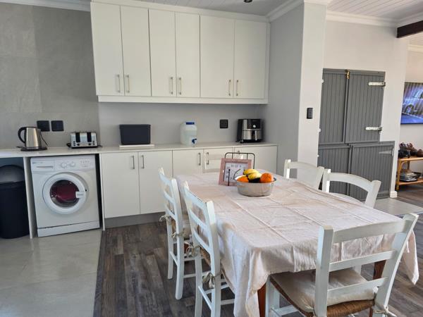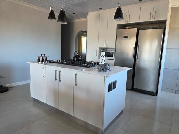 Downstairs, there are four bedrooms, two kitchens, one of which is newly renovated, two lounges, and two built-in braais. Upstairs features the main bedroom with its own en-suite bathroom, overlooking the stunning north facing mountain view, providing privacy and comfort.
