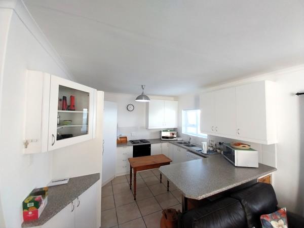 The front door enters into a small reception hall which leads into the spacious open plan living/dining room with built-in braai. It flows into the kitchen which is fitted with ample built-in cubpoards and a built-in electric stove. The main bathroom located to the right of the short hallway, is fitted with a bath, shower, basin and toilet. Then follows the enclosed stoep/sunroom which opens into the back garden via large sliding doors.