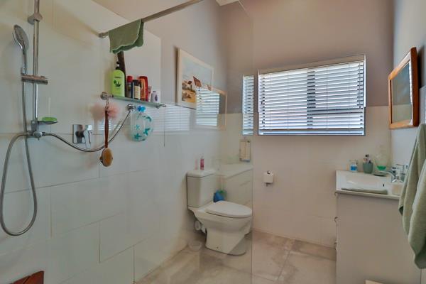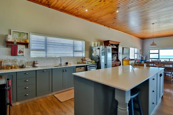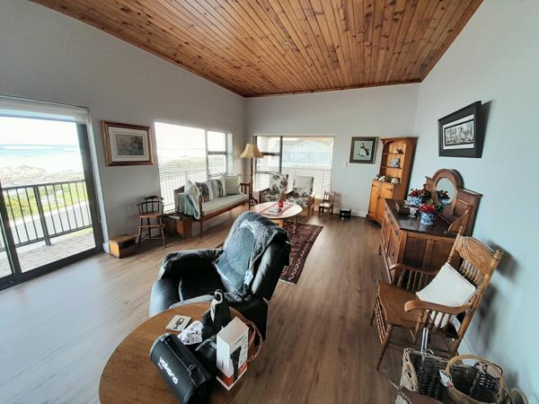 A very well presented spacious dwelling with the potential to utilise as three separate units. The main house comprises a large open plan kitchen/dining/sitting room (with fireplace) and balcony on two sides with uninterrupted ocean views. Two bedrooms, shower & toilet, and a walk in closet including a built in Safe. Large west facing sitting room with a braai & bar, and access to the courtyard. Guest toilet.