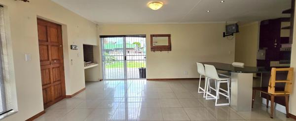 The home offers a spacious, modern kitchen with a gas hob, ample cupboards, and direct access to both the garage and backyard. An open-plan living, dining, and indoor braai area flows seamlessly to the patio and low-maintenance garden, creating a perfect space for entertaining or relaxing with family.