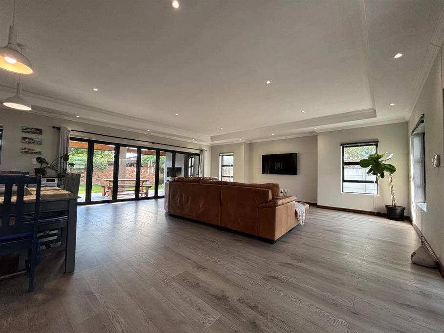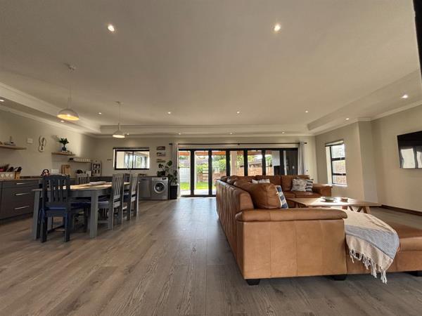 The heart of the home boasts an open-plan kitchen that seamlessly connects to the lounge, creating a warm and welcoming space for entertaining or relaxing. The kitchen is equipped with a gas hob and gas oven, making it a dream for any cooking enthusiast. Ample built-in cupboards provide plenty of storage, while natural light flows beautifully through the sliding doors, illuminating the space.