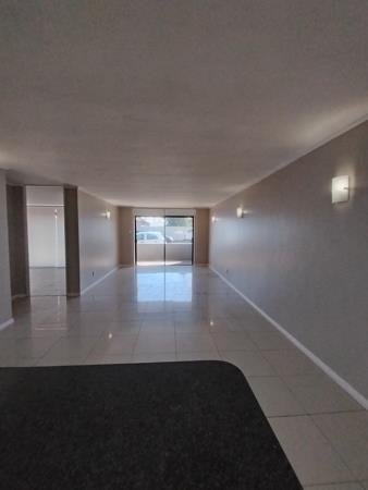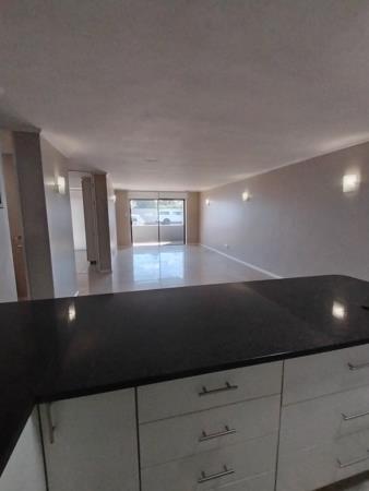 Spacious open-plan living area with ample space for a big dining room table and chairs as well as comfortable family room/tv area flowing out onto the balcony through the sliding doors. Stylish kitchen with ample cupboard space and a new stove top and oven.