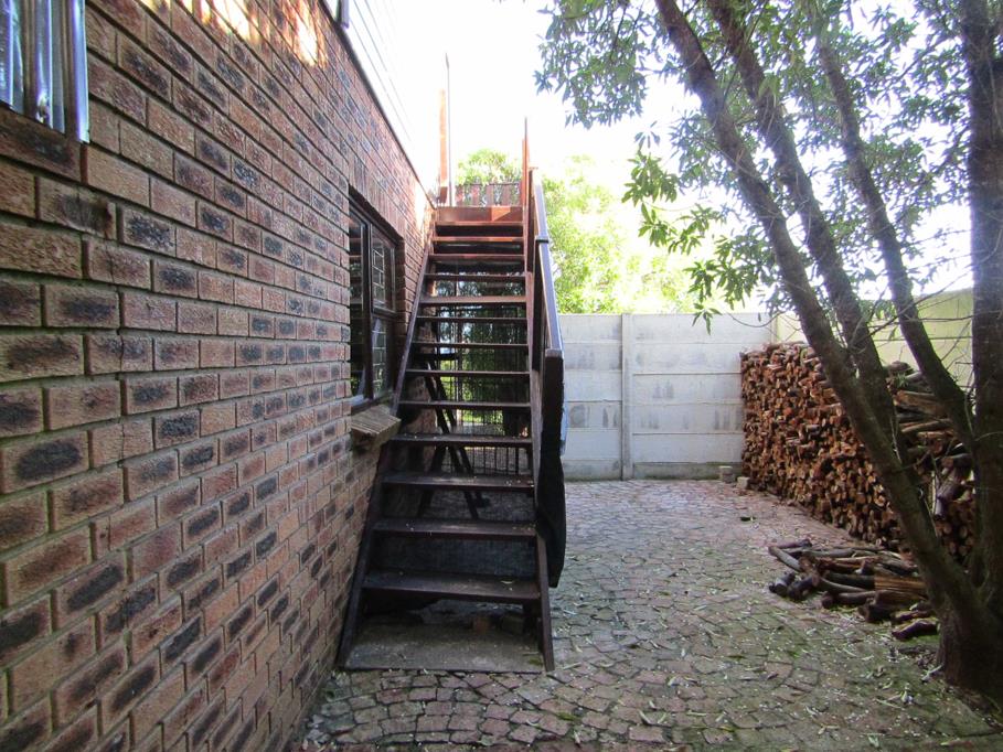 The dwelling offers - on the ground floor a spacious bachelor flat with kitchenette and bathroom (this can also generate potential income), a double garage, as well as an outside braai area. The first floor consists of an enclosed balcony, open plan kitchen/living room, separate braai room with built-in braai, a full bathroom and two spacious bedrooms.