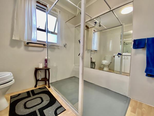 The sunny open plan family / holiday home is wheel chair friendly and offers 3 spacious bedrooms with built-in cupboards, 2 bathrooms (1 x 2 showers, loo and basin, and 1 x bath, shower loo and basin) Open plan living - dining area with kitchen and scullery with space for laundry.