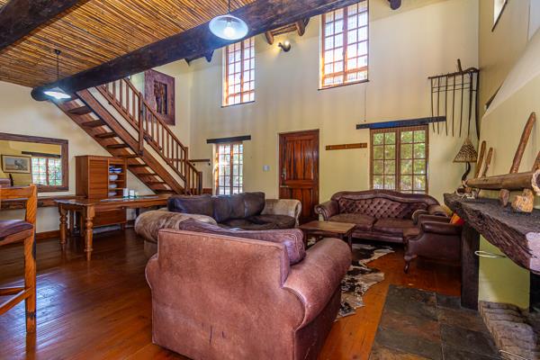 -An expansive open-plan living area comprising a double volume kitchen, dining, and lounge. The large open fireplace and indoor braai create the perfect space for cosy family gatherings. Two comfortable bedrooms and a full bathroom complete the downstairs layout.