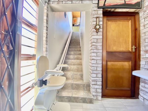 The forward-thinking current owner has installed a high-end stair lift leading to the first-floor entertainment room, which offers 180-degree sea views. This is a big bonus for any person with immobility issues that might come later in life. The room is semi-divided into two areas: one side featuring a seating area with ocean views and a guest toilet for convenience, and the other side equipped with a large built-in braai, perfect for a games room.