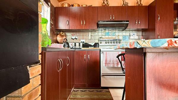 The home welcomes you with a bright, open plan lounge and dining area that flows through sliding doors onto a covered stoep, creating the perfect spot to enjoy your morning coffee or unwind in the evening. The kitchen is spacious and thoughtfully designed, with plenty of cupboard space, a moveable island for flexibility, and even a washing machine neatly hidden inside a cupboard. The indoor braai adds to the home''s appeal, offering a great space for relaxed entertaining all year round. The large main bedroom is currently used as a second lounge or utility room and has ample built-in cupboards. The other two bedrooms also feature built-in cupboards. A neat bathroom with a shower and basin, plus a separate toilet, completes the home.