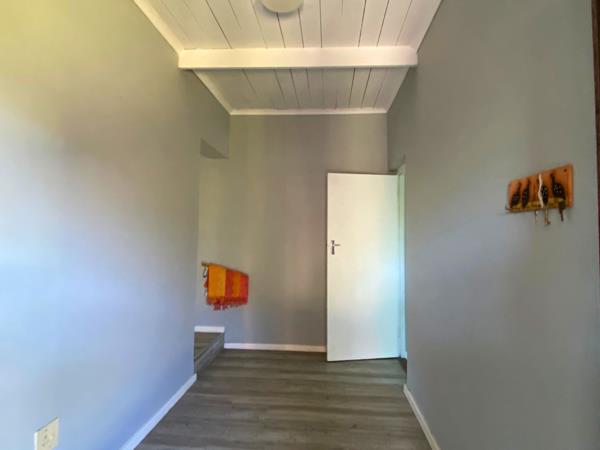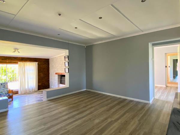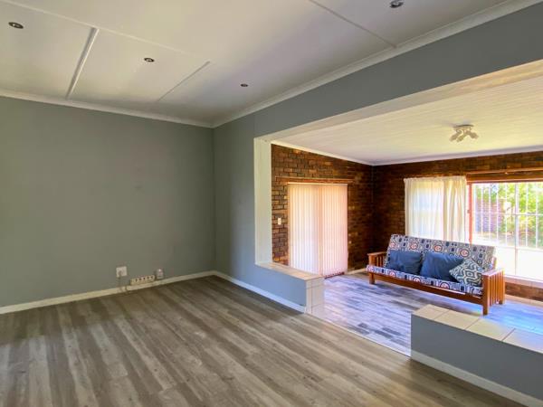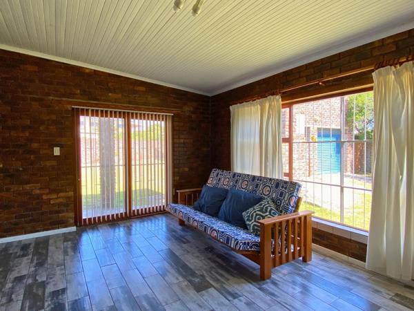 The heart of the home is the expansive open-plan living and dining area, featuring a built-in indoor braai and fireplaceperfect for cozy nights. The well-equipped kitchen includes an eye-level oven, electric hob, extractor fan, and adjacent scullery with separate laundry area, providing ample space for all your appliances.