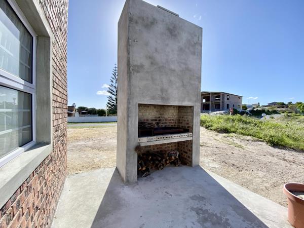 EXCLUSIVE SOLE MANDATE - Looking for a place to call home at the coast? This new build face brick gem is the perfect mix of easy living and endless potential offering room to expand. Whether youre after a full time home or a relaxed holiday getaway, this spot ticks all the boxes. Step inside and you are welcomed by high ceilings in the open plan living area and kitchen making this the heart of the home. The coal stove keeps the whole place warm and cosy while cement screed floors give it a modern, beachy vibe. What you will also love are the 2 spacious bedrooms, family bathroom and ensuite shower room. Additional features include a 52m2 double garage with plumbing connections, aluminium windows frames for durability and a solar geyser for energy efficiency. The outdoor braai is perfect for summer cookouts or it could be enclosed to create another entertainment space. And best of all youre just a short walk away from our famous beaches where you can swim, fish, watch whales or just relax.