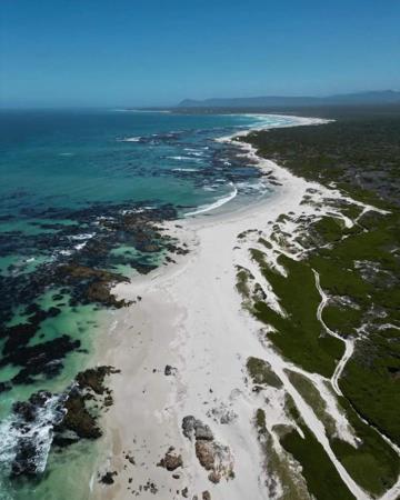 Pearly Beach, Crest Way, is a serene coastal village in the Overstrand, Western Cape Province, South Africa. The area is known for its powdery white beaches, indigenous fynbos, and nature dunes, offering a picturesque and tranquil environment. The village has maintained its character as a picturesque hideaway and fishermans paradise, despite a growing population and infrastructure. Pearly Beach is a hub for a private Beer tasting brewery, restaurants, wine tasting farms, artist culture and guesthouses, catering to a range of needs and preferences. The villages charm lies in its old traditions, jovial camaraderie, and the passion for wide-open spaces and the fertile coastline where fishing has been a tradition for decades. The area is also a breeding ground for various sea life, including the southern right whale, making it a prime location for whale watching and other marine activities. Fisherman can fulfill the challenge to catch that 100-pound cob off the rocks of Pearly beach.