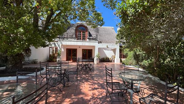 The heart of the property is a striking thatched manor house, surrounded by tall trees, indigenous milkwood forests, gardens and mountain views.