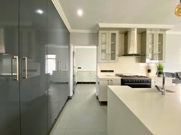 State-of-the-art kitchen with modern high-gloss finishes and a large scullery