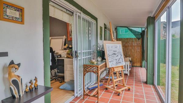 A glass-enclosed stoep extends the living area and invites natural light into the home, Access is available via the front garden gate or through the double garage, which is equipped with automated doors and extra space for a washing machine, tumble dryer and more. The fully enclosed, maintained garden, offering privacy and security.