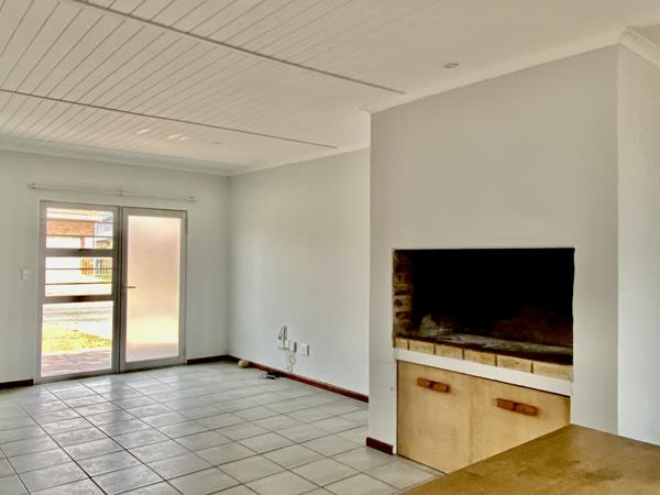 This neat 3-bedroom home offers two en-suite bathrooms plus a third bathroom conveniently placed for guests. All bedrooms feature built-in cupboards, with a generously sized linen cupboard ideally positioned between two rooms. The open-plan kitchen flows into a welcoming lounge that doubles as a braai room, complete with a built-in hearth. The kitchen is plumbed for a dishwasher and washing machine including larger top loaders.