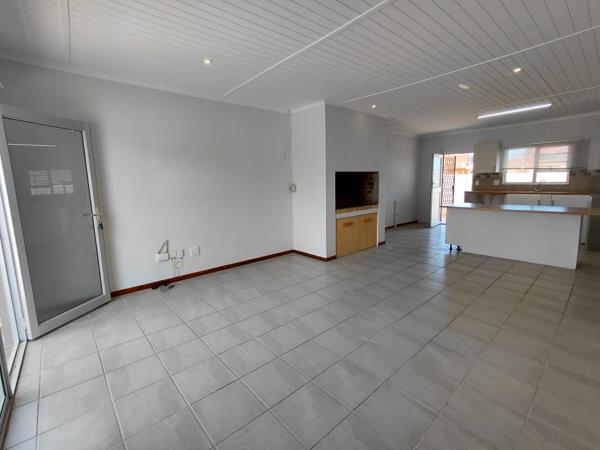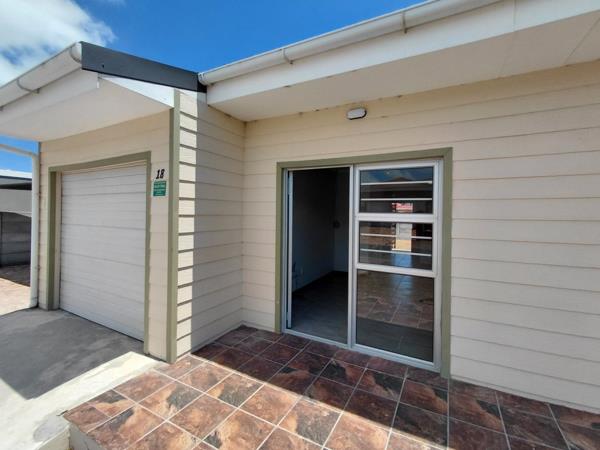 This three bedroom nu tech house is close to the town. It has an open plan living area with kitchen and braai. The two bedrooms to the right side have en-suite showers. And there is third shower bathroom. The garage has a motorized door and can be accessed from the kitchen. The house has an alarm system and fiber internet is available. To the left side is a carport.