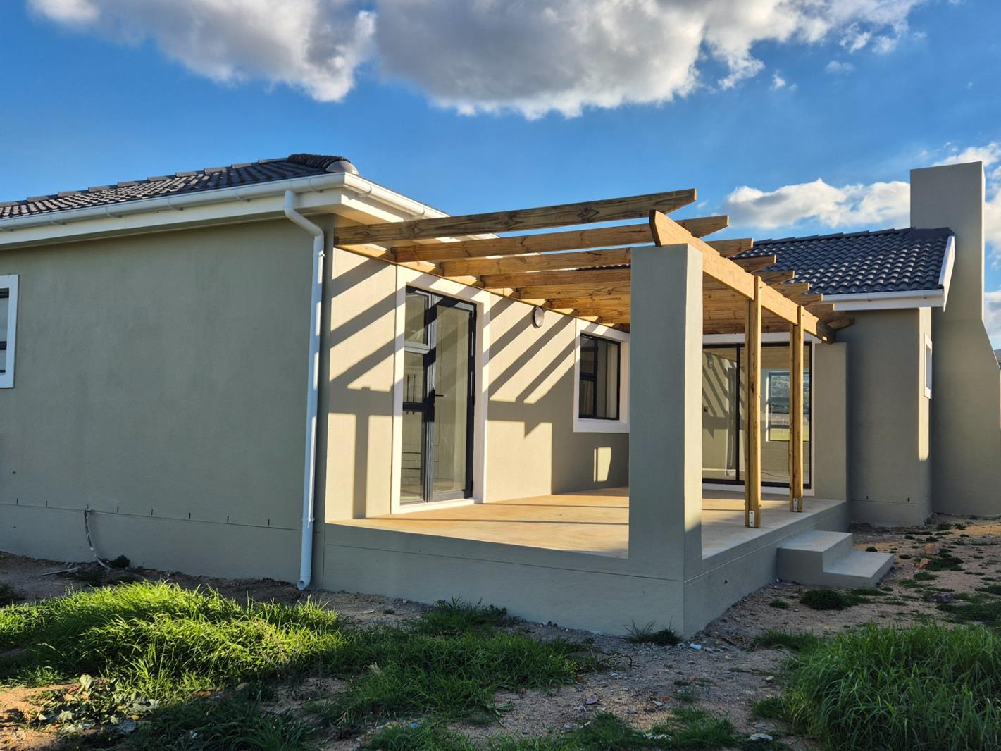 DUAL MANDATE This newly built home offers stylish, open-plan living with beautiful finishes throughout. The spacious living and dining area features a built-in braai, perfect for entertaining family and friends. A separate scullery keeps the kitchen neat and clutter-free, while doors open up to a lovely stoep, seamlessly extending your entertainment space.